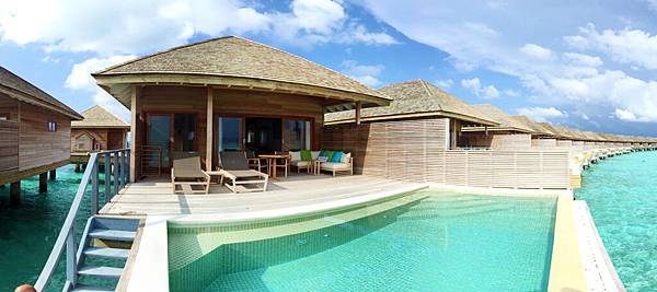 由馬累坐40分鐘水上飛機就到達呢個迷人小島,全resort有90間villa,當中有30間beach villa及60間ocean villa,每間villa都大概有1300呎,villa可再細分為日出丶日落丶附泳池及不附泳池,今次我哋入住不得不住嘅ocean villa with pool!