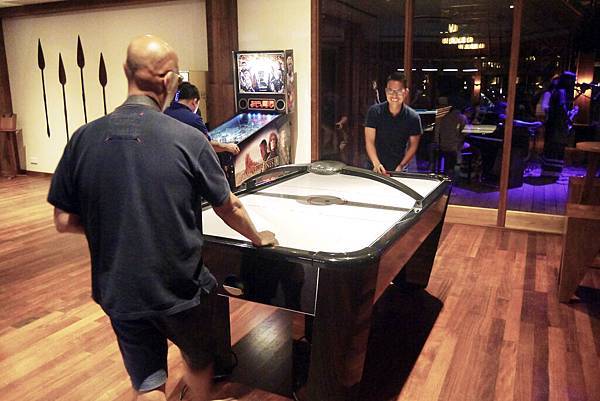 講完住就講吓食~resort內有三間餐廳同一間bar,先介紹對住主島infinity pool嘅"CoCo Bar",嚟呢度最好玩,因為呢間24小時營業嘅bar內除咗有live music仲有間活動室,裡面有乒乓波丶桌球丶彈珠機,食鬼機etc⋯可以同其他酒店住客一齊玩吓,玩完又可以出去聽吓歌,欣賞寧靜中帶點熱鬧嘅馬爾代夫星空