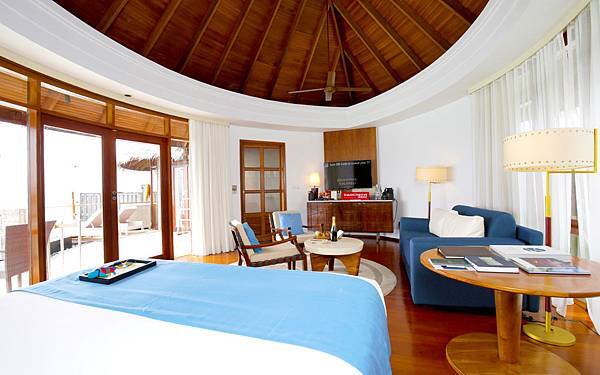 Water villa最適合愛侶二人世界,樓底高所以感覺特別寬敞,佈置簡約舒適,房間佈局分明,左邊係睡房,右邊係浴室,房間仲有個喺馬爾代夫酒店好少見嘅對流窗,打開窗同露台玻璃門空氣對流,清風送爽,唔洗成日開冷氣都好舒服!